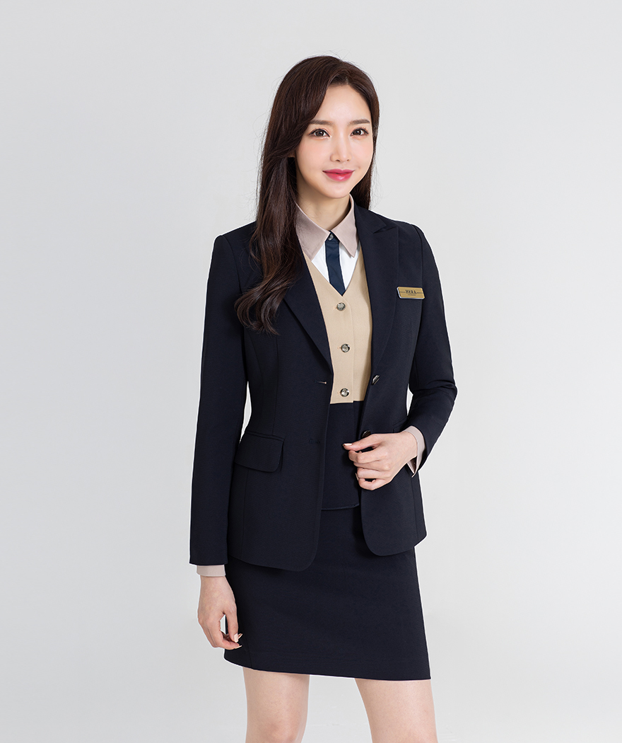 자켓 - 네이비, 블라우스 - 아이보리 , 조끼 - 네이비 + 베이지