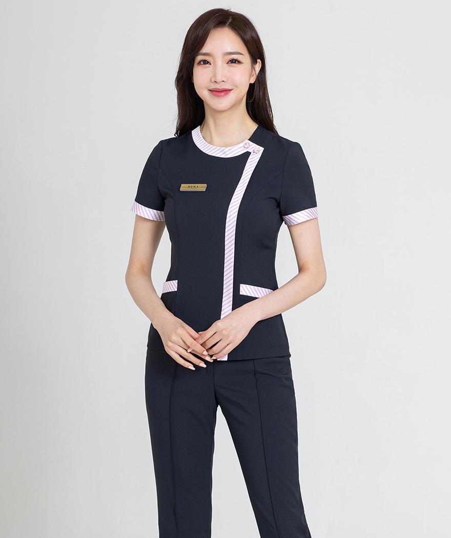 상의 - 다크네이비 + 핑크 스트라이프